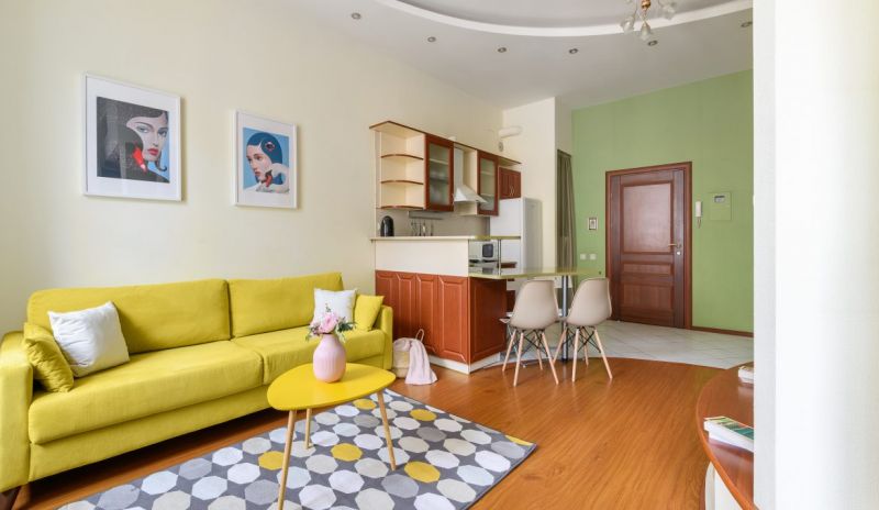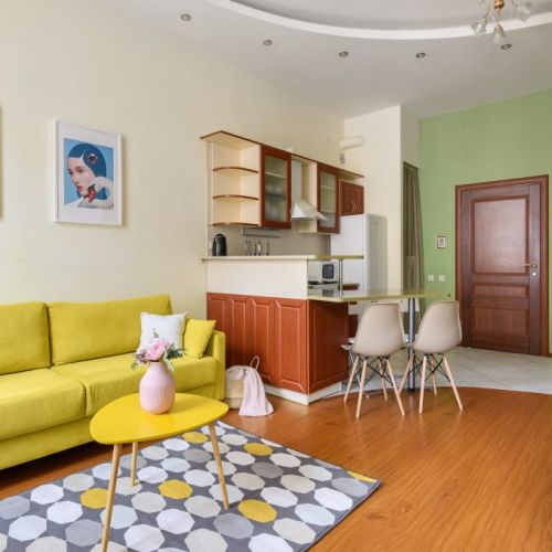 Апартаменты разместились в центре Петербурга недалеко от Сенной площади. Поблизости несколько станций метро, большой выбор кафе, ресторанчиков, пабов, рядом – набережная реки Фонтанка, драматический театр им. Товстоногова, Юсуповский сад. До Невского проспекта можно дойти за 15 минут, а в 10 минутах езды – Московский вокзал, куда прибывают скоростные сапсаны из Москвы.